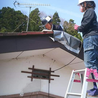 運搬班は重たい瓦があり、ダンプを使っての作業となり、途中でトタン棟が飛んでいるヶ所の修理もこなしてくれました。