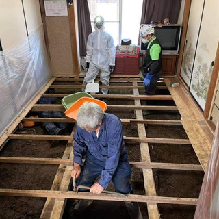 愛知人メンバーがクリアランスゼロの床下まで入ってくれ、泥の取り除きをしてくれました。