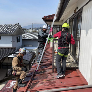 屋根上の雪が溶け、瓦が乾き始めてから屋根上作業に取り掛かる。