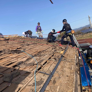 Bチームは平屋のお宅、瓦はほぼズレてしまったため、住人さんの意向により全撤去。