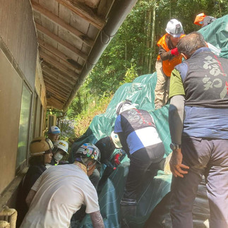 朝夕は冷え込むものの、日中は真夏のような陽気でした。活動は、母屋裏の土砂崩れに見舞われたKさん宅の継続。