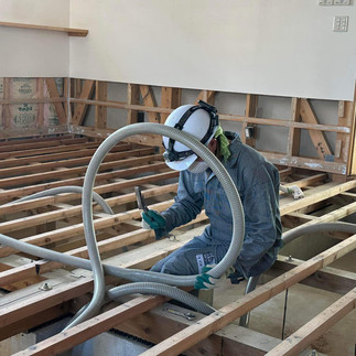昨日から引き続き能島の整骨院での作業。 PBVさんでトイレの床と壁剥ぎを実施しながら、我々はまず中に積んであった、これまでに出た木片やコンパネを外に出し、次に導線に仮留めされていたコンパネを外していきました。 作業には市民ボランティアさん2名も参加されており、一つ一つの作業について、PBVさんから目的と内容を教えながらの実施になりました。 今日確認したトイレや他の部屋の壁の中のグラスウールは乾いており、取り出す必要はないものばかりでした。この地区は水が引くのが早く、断熱材が水を弾いている間に水が引いたためだそうです。 午後はベタ基礎の掃除。バキュームが不調で苦戦しましたが、最終的に各部屋きれいになって作業終了しました。