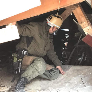 大谷町の倒壊家屋から娘さんの遺品捜索。以前にも実施したが、今回は黒のリュックと、ポケットに車のキーが入った緑のジャケットを取出す作業。