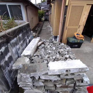 2件目、ベース前のブロック塀の解体も実施。綾部市匠工務店の方に資材置き場所の鴨居の補強をして頂きました。