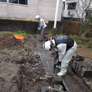 20m倒れて10m残ったブロック塀を一日かけて解体しました。途中から雨が降る中、削り機やハンマーを駆使しての解体。側溝に土砂が流れ込まない用にビニールシートや解体したブロックで土留を施工。側溝に落ちたガラや土をかき出して終了となりました。住人さんからは今後どうしようと目を潤ませながら話をさてれました。