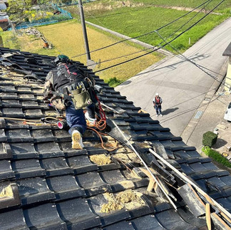 今日は昨日の継続案件で母屋の大屋根の補修作業を主に行いました。