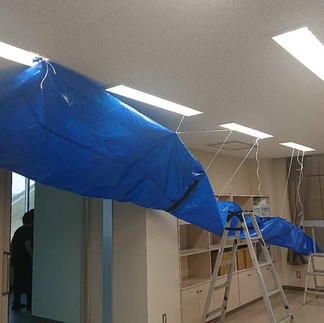 ベースの車を飯田小学校に移動させたあと、社会福祉協議会に雨漏りのニーズが有るとのことで駆けつけました。ブルーシートの室内張りを、行い排水経路を、確保して作業完了。ベースにも危険が迫ってきたので皆さんで緑丘中学校の避難所に一時避難しました。