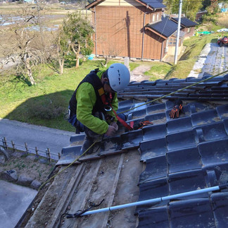 離れの下屋は破れた瓦の下ろしと平瓦の差し替えを実施。ブルーシートを一旦戻して継続となりました。