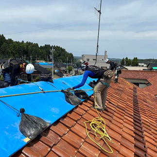 昨日から継続の屋根案件。設置したキャッチャーにブルーシートを巻いて打ち付け。瓦に120ミリのビスで番線の穴から野地に打ち付ける方法も取りました。2月の施工時点では使用しなかった土嚢も7組14個使用。万全の体制で完了しました。住人さんから何度もお礼のお言葉をいただいてしまって逆に恐縮してしまいました。