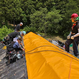 公費解体予定の家屋で、解体まで雨漏りを防止するため。