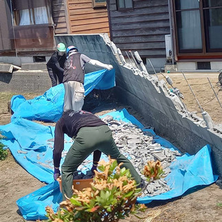 ブロック塀5段全部撤去の依頼でしたが、依頼者が庭の土が流れるので一段残してほしいとのことでしたので、一段残すことにした。依頼者のおばあちゃんが凄く喜んでくれました。