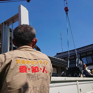 天気は晴れ気温は30℃少し動くと汗ばむ気候でした。熱中症に気をつけないといけないなと感じながら作業を行いました。半壊した家屋に入り、家具や仏具の運び出しの作業を行いました。仏壇の搬出を希望されていましたが、仏壇が傾いた家屋を支えているため、動かすことができなかったため、運搬は断念。天井が低くて頭が当たりそうにならながらの作業で安全確認し、声かけを行いながら作業をしました。マッサージチェアは外まで出して、ユニック車で吊って運び出し、依頼主の親戚の家に運び作業は終了しました。安全衛生の業務に携わることもあるため、声出し、指差し呼称などマニュアルに従って行うことが多かった。実際の作業現場に行くと、危険箇所も多いため、周知して安全に作業を行えるためにとても大切だと感じました。