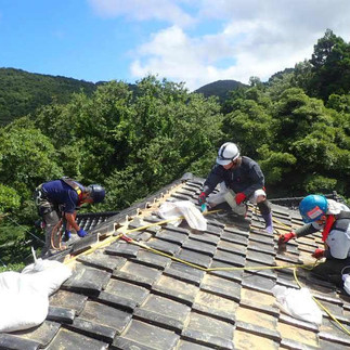 昨日の継続で屋根の補修活動。丁寧にメンバー全員で屋根の砂を清掃。ブルーシートを張りマイカー線で固定。本日は住民さんにお会い出来ませんでしたがご連絡したところ安心して頂けたとの事です。