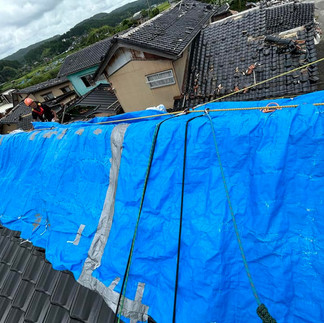 依頼者さんは去年の震災の時に万が一の為にと、納屋でも生活できる様にと納屋をリフォーム。今回の地震で家屋は倒壊、納屋は無事でしたが屋根の破損。今は納屋での生活をされています。雨漏りを絶対させたくないと願う納屋の天井にはキリコ祭りで使われた立派な文字と絵がライトアップされる様になっていました。シートを張り終わると依頼者さんはもちろん、ご近所の方々からも綺麗だと大絶賛!新規ニーズも受け付けました。