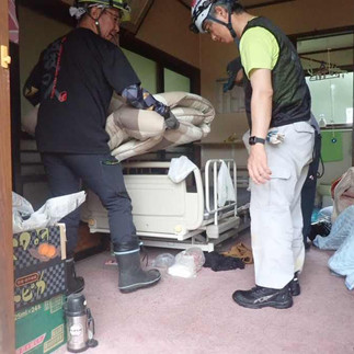 誰のせいかわかりませんが、一晩中降り続く雨に活動が危ぶまれましたが、日頃の行いの良い方々のおかげでなんとかあがってくれました。家主さんは90歳を超えたお父さん。現在は仮設住宅で暮らしているが、いずれ仮設から移った先に持っていけるように、家の取壊しが始まる前に、布団やストーブなどを倉庫に移したいとのこと。「まさか、こんなことになると思わんかった」ポツポツと語るお父さんの大きな母屋にはたくさんの布団やストーブ、納屋には農作業の資材機材がありました。きっと、お祭りやお正月には家族が大勢集まったりして賑やかだったことがうかがえます。「欲しい人がいたら譲ってあげたいから」と介護ベッドや七段の雛飾りも母屋内で移動し、また持ち出したいものがあれば、後日センターに連絡くださいとお伝えしつつの作業は完了。お茶とアイスをいだいて別班の支援にむかい、午前で上がらせていただきました。