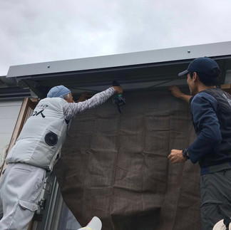 くもり、汗もそんなにかきそうもない午後。依頼内容は、お宅前の4段のブロック塀の上2段を解体すること。ブロック塀解体はプロ中のプロのお二人に、ハツリ機を任せ、どんどん作業が進み、40分後には、全作業が終了しました。家主さまから、「さっぱりしたわ」と喜びの声と、美味しいコーヒーと山椒がまぶしてあるピーナッツのおかしをいただきました。ふと屋根を見上げると、棟には防水シートがPPロープで固定されていたため、家主さまに、PPロープは、マイカ線に変えた方が耐久性が良いこと、また、雪止めに瓦が一時置きしてあり、安全のため積雪時期の前に降ろした方が良いので、必要であれば要望を上げてくださいとお伝えさせていただきました。屋根修理の時期が決まっていないお宅もあるかと思います。冬に向けた提案型の屋根応急処置の活動も必要なのかもしれません。