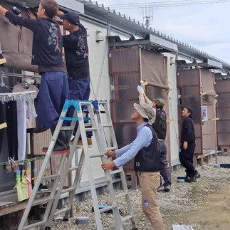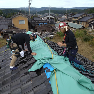 昨日からの継続案件。2階屋根全面ターポリン施工。ザネさんとミネちゃんが今日参戦してくれたおかげで、屋根上での瓦移動を一手に引き受けてくれ、公費解体が決まっているお宅とはいえ、今尚住んでおられる母屋を良い仕事で仕上げる事が出来ました。被災者のご主人、昨日の我々の作業を見て感動し、一旦は公費解体を決心したが、やっぱり自宅への愛着捨て難く、昨夜なかなか寝付けなかったそうです。我々の作業によって、かえって悩ませてしまい、申し訳わけないと感じると共に、被災者さんに選択肢を増やすぐらいの活動が出来て、メンバー一同満足な活動でした。