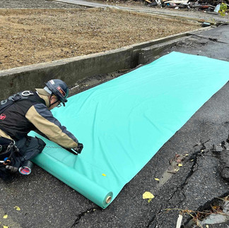 前回、棟瓦の解体まで済ませたお宅でのお手伝い。本日も雨雲レーダーを見ながら作業を進めましたが、ことごとく予想が外れ、気づけばほぼ一日中雨がぱらついていました。まずは、大屋根の解体した棟瓦おろし、あんこを載せて防水シートをマイカ線で固定しました。瓦が雨で濡れていたため、防水テープによる固定は不可能でした。次の下屋も、防水テープが貼れないため、割れた瓦を降ろし、防水シートを張る準備までしかできませんでした。本日、屋根作業初めての原さんのコメントです。