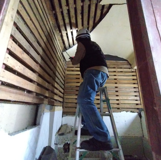 昨日からの継続案件。地震にて剥がれかかった天井や壁のリフォームに向けての作業。お風呂は天井の剥がし、廊下は土壁の1面撤去。最後は集塵機で掃除をして終了です。10時と15時の休憩はご夫婦と団らん時間。震災当日の話、ご家族の話、ご近所の話、買い物の話。明日はどんな話題になるでしょうか。