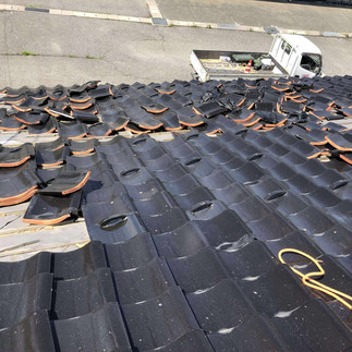 午後からは、公費解体は決まっているが、町の大切な機材が入っている公民館倉庫へ。屋根に登ると規模も大きく、棟瓦崩れ、平瓦散乱。明日のメイン作業日の前に、今日は安全確保の為の親綱張り、平瓦並べ直しの活動。明日の作業の段取りと必要ターポリンの採寸をして本日の作業終了。明日も継続です。