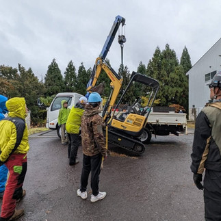 11月9日DSGふくいさんの重機講習に参加させていただきました。あいにくの雨天でしたが、愛知人5名、滋賀県の消防士の方々が3名、合わせて8名が講習を受けました。講習内容はチェンソー、ユンボ、ユニックなどの座学から実技まで、サービスてんこ盛りの一日となりました。僕はユンボを重点的に勉強させていただきました。長時間自由に練習させてもらえたため、ユンボはもう手足の様に動かせる気がしております。気がするだけです。